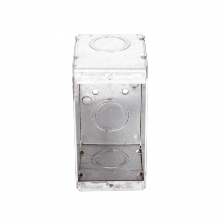 Las cajas multigang de acero galvanizado de 2 1/2" de profundidad con entradas para tubería de 1/2" y 3/4".
