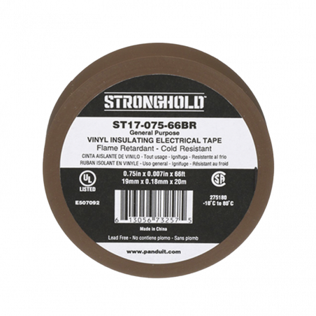 Cinta Eléctrica STRONGHOLD para Aislar, de PVC, Uso General Reparación y Mantenimiento, Grosor de 0.18mm (7 mil), Ancho de 19mm, y 20.12m de Largo, Color Café
