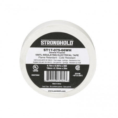 Cinta Eléctrica STRONGHOLD para Aislar, de PVC, Uso General Reparación y Mantenimiento, Grosor de 0.18mm (7 mil), Ancho de 19mm, y 20.12m de Largo, Color Blanco