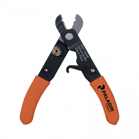 El PA1162 es un desforrador de fibra óptica de Tempo Communications de 3 niveles. Esta herramienta es para pelar cables de fibra óptica de 2.0 a 3.0 mm y presenta manijas de goma con un mecanismo de bloqueo para seguridad y transporte.
