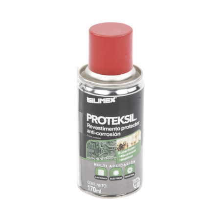 Proteksil es un protector en aerosol anticorrosivo puede usarse para proreger tarjetas o circuitos eléctronicos, evita la corrosión en los conductores, tornillos, partes metálicas aún en ambientes húmedos.