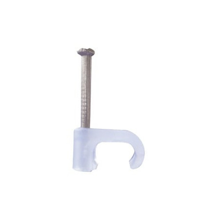 - Grapas con clavo integrado para sujetar conductores planos a muros o techos.
