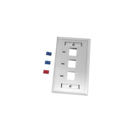 Placa de pared, de 3 puertos, Keystone, con espacio para etiqueta - Color Blanco