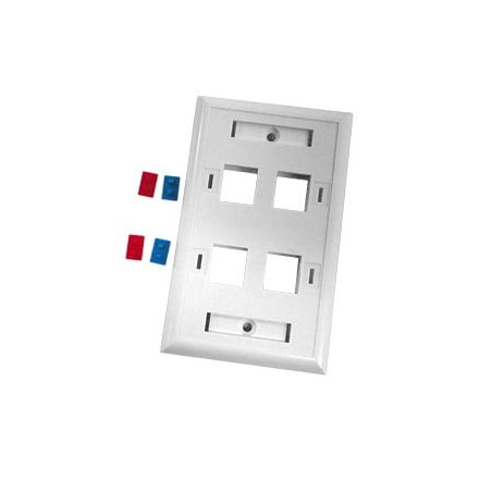 Placa de pared de 4 puertos, Keystone, con espacio para etiqueta, Color blanco