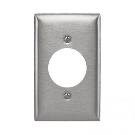 Dispositivos Twist-Lock®, placa de pared, 1 unidad, accesorio para dispositivos de 20 y 30 amperios de 3, 4 y 5 cables, acero inoxidable 302/304, .035 pulg. (0.9), acabado cepillado horizontal comercial.