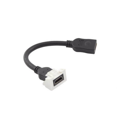 Cara modular: El conector HDMI hembra ensambla directamente en un solo espacio de 2 puertos de una placa de pared de la serie MAX o el adaptador de muebles modulares.