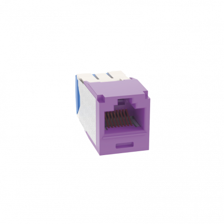 El módulo de conector UTP Categoría 6A/Clase EA de 8 posiciones, se termina en un cable de par trenzado sin blindaje de 4 pares, 22 - 26 AWG d 100 ohms y no requiere el uso de una herramienta de impacto. La tapa de terminación tiene un código de color azul para designar el rendimiento de la Categoría 6A e incluye una etiqueta universal codificada para los esquemas de cableado T568A y T568B. El módulo de conector Mini-Com® TX6A 10Gig UTP se instala como parte del sistema de cableado de cobre TX6A 10Gig UTP para lograr el rendimiento certificado IEEE 10GBASE-T.