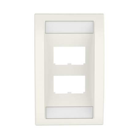 Placa de Pared Vertical Ejecutiva, Salida Para 4 Puertos Mini-Com, Con Espacios Para Etiquetas, Color Blanco Mate