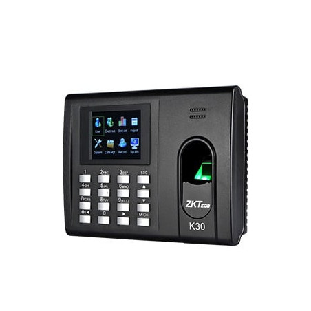 El K30 es una elegante terminal de Tiempo y Asistencia con funciones básicas de control de acceso.Permite la administración de cerraduras eléctricas y botones de salida.