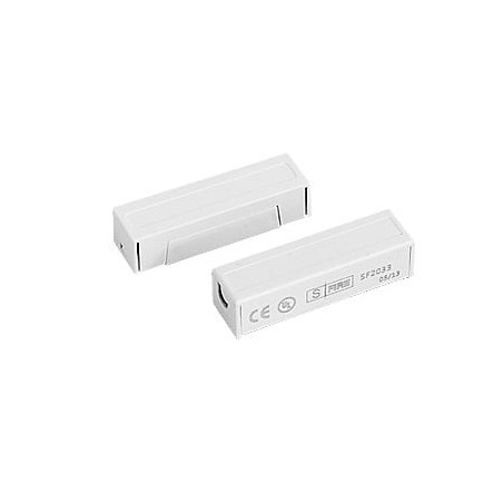 El Sensor magnético para ventanas y puertas consta de un imán y un reedswitch (interruptor magnético). Este sensor funciona como un switch normalmente cerrado (mientras hay campo magnético). Cuando la puerta o ventana se abre, el circuito eléctrico también se abre y es posible detectar la apertura de la misma.