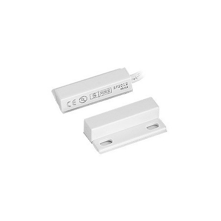El Sensor magnético para ventanas y puertas consta de un imán y un reedswitch (interruptor magnético). Este sensor funciona como un switch normalmente cerrado (mientras hay campo magnético). Cuando la puerta o ventana se abre, el circuito eléctrico también se abre y es posible detectar la apertura de la misma.
