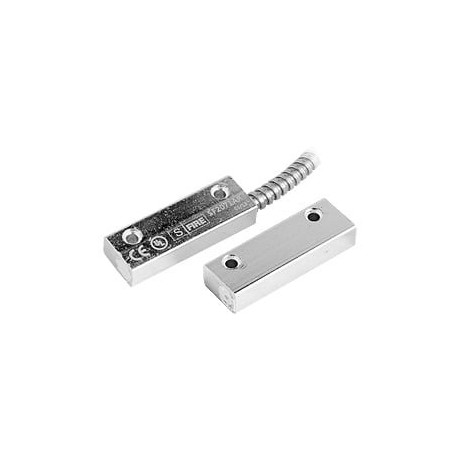 El Sensor magnético para ventanas y puertas consta de un imán y un reedswitch (interruptor magnético). Este sensor funciona como un switch normalmente cerrado (mientras hay campo magnético). Cuando la puerta o ventana se abre, el circuito eléctrico también se abre y es posible detectar la apertura de la misma.