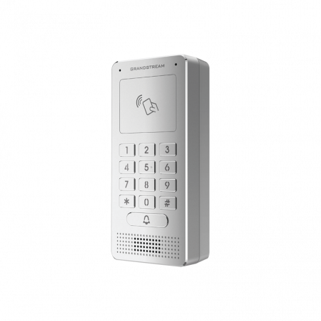El GDS3705 se diseñó para usuarios que buscan una solución sólida de control de acceso a instalaciones sólo con audio y de monitoreo de seguridad que pueda implementarse en ambientes de cualquier tamaño. Este sistema de intercomunicador (citófono) incluye micrófonos duales y altavoz HD con AEC de tecnología avanzada para ofrecer la función de intercomunicación, puede soportar llamadas SIP a teléfonos IP y tiene un lector de tarjeta de proximidad RFID integrado y teclado para acceso seguro con o sin clave. El GDS3705 viene equipado con una carcasa metálica con aleación de zinc, haciéndolo impermeable y a prueba de vandalismo y ofrece soporte de entrada y salida de alarma para integración con dispositivos de seguridad existentes. El GDS3705 se integra con el software gratuito de gestión de servicios de Grandstream, el GDS Manager, permitiendo que la información de la tarjeta RFID, así como el dispositivo sean totalmente gestionados por este software. Gracias a su integración con otros dispositivos Grandstream como los teléfonos IP y la aplicación móvil GS Wave, el GDS3705 ofrece una solución continua completa para control de acceso, intercomunicación y necesidades de seguridad.