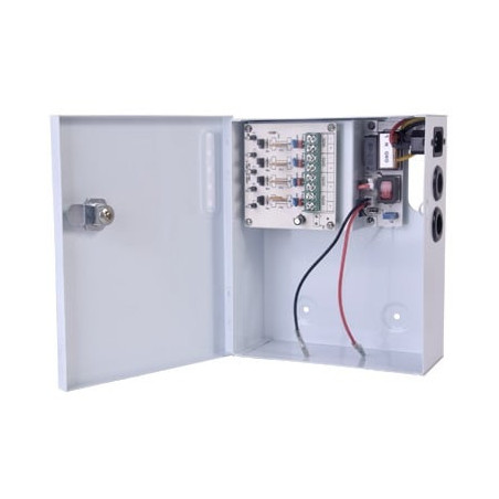 La luz verde enciende, cuando la fuente cuenta con su entrada de alimentación de 100-240 Vca, suministrando así tanto a la carga de la batería como la requerida. Cuando falla la energía, la batería proporciona el voltaje, el led en rojo enciende, y al mismo tiempo entra en la etapa de monitoreo del voltaje de la batería, cuando detecta que el voltaje de la batería cae a 10.5 Volts, el circuito cortará la carga, la fuente de alimentación ya no cargará, para evitar que la batería se descargue, protegiendo así la vida útil de la batería, el sistema se reiniciará automaticamente cuando vuelva la alimentación de la red, a su estado normal.