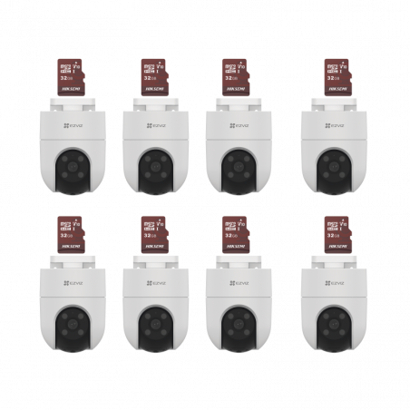 Kit de Camaras WiFi, Incluye 8 Piezas CS-H8C y 8 Piezas HS-TF-E1/32G / Audio de Dos Vías / Detección de Movimiento / Luz Blanca / Sirena / Uso en Exterior con Protección