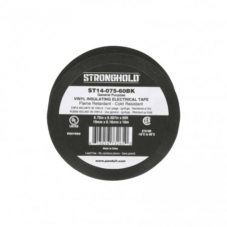 Cinta Eléctrica STRONGHOLD para Aislar, de PVC, Uso General Reparación y Mantenimiento, Grosor de 0.18mm (7 mil), Ancho de 19mm, y 18m de Largo, Color Negro