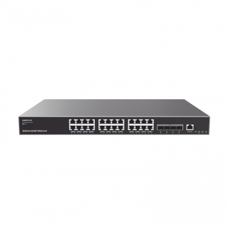 Switch Capa 3 PoE+ Administrable / 24 puertos 10/100/1000 Mbps + 4 Puertos SFP+ de 10 Gigabits / Hasta 360W / Compatible con GWN Cloud.