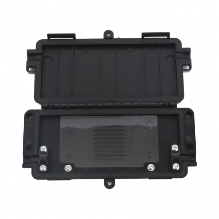 La caja de empalme Horizontes LP-FAT Linkedpro con sellado mecánico, está diseñado para instalaciones aéreas sobre cables troncales y distribucion asi como para instalacion en pared.