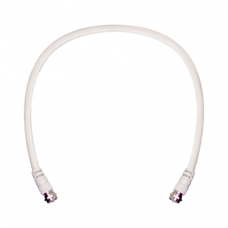 Jumper de cable coaxial tipo RG-6 en color blanco de 60.96 cm de longitud y conectores F macho en ambos extermos.