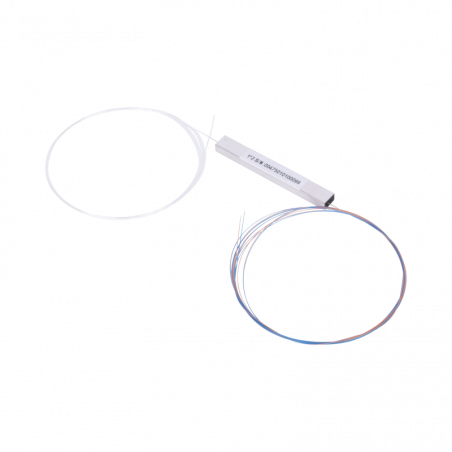 Splitter (Divisor Óptico) tipo PLC, de 1x2, balanceado (50/50) para fusión (sin conectores)