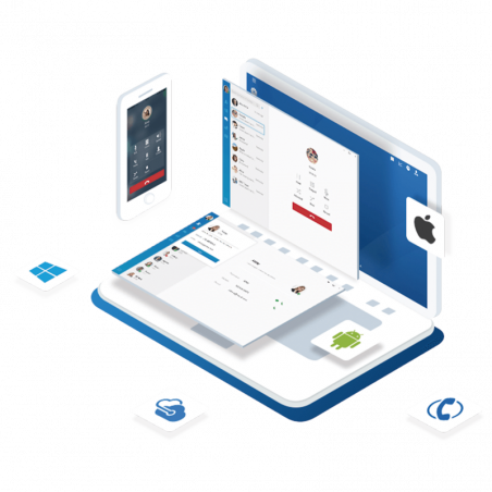 Para crear una plantilla flexible, solo necesita Linkus UC Clients en sus instalaciones, accesible desde navegador web, móvil o escritorio. Las conversaciones se sincronizan entre dispositivos, garantizando que no se pierda información importante. Incluye presencia, chat, agendas telefónicas, integración CRM y más.