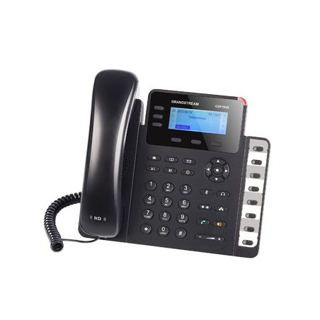 El GXP1630 es un poderoso teléfono IP para pequeñas y medianas empresas (PyMEs). Este modelo basado en Linux incluye 3 líneas, 3 teclas XML programables, 8 teclas BLF y conferencia de 4 vías. Una pantalla LCD 132 x 64 con iluminación de fondo crea una imagen clara para una fácil visualización. Las características adicionales como dos puertos de red Gigabit conmutados, audio HD, soporte multilenguaje, PoE integrado y llamada en espera hacen del GXP1630 un teléfono para oficina de alta calidad, versátil y confiable.