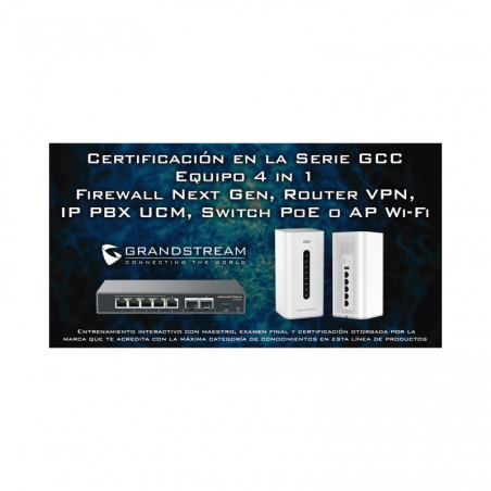 Certificación presencial de entrenamiento de las soluciones de seguridad de la serie GCC60XX de Grandstream, este curso tiene como propósito brindar el conocimiento necesario para la implementación de un esquema de seguridad global en la red para evitar diversos tipos de ataques, virus, malwares, entre otros temas de seguridad además de administrar y gestionar accesos a páginas webs y aplicaciones.