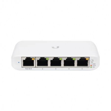 Construya y expanda su red. El switch modelo USW-Flex-Mini, es un switch administrable Gigabit inteligente el cual ofrece 5 puertos Ethernet RJ45, proporcionando enlaces de 1 Gigabit a sus dispositivos, adicional puede encender el USW-Flex-Mini con el adaptador de corriente USB Tipo-C o con PoE 802.3af/at en el puerto 1.
