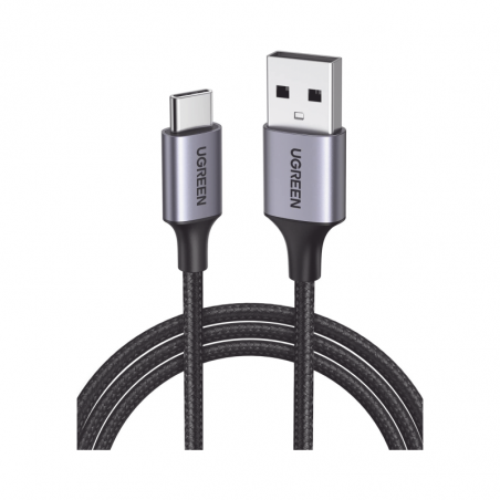 Cable USB-A a USB-C | 2 Metros | Transferencia de datos de 480 Mbps | Carga Rápida | QC 4.0/3.0/2.0 | FPC | AFC | Protección Integrada | Caja de Aluminio | Nylon Trenzado | Color Negro.