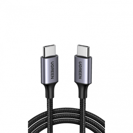 Cable USB-C a USB-C | 2 Metros | Transferencia de datos de 480 Mbps | Carga Rápida de hasta 60W | QC 4.0/3.0/2.0 | PD3.0 | FPC | AFC | Protección Integrada | Caja de Aluminio | Nylon Trenzado | Color Negro.