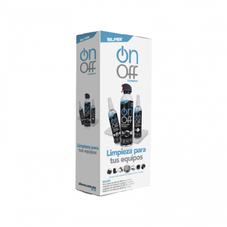 Elimina el polvo de tus equipos con el Aire Comprimido On/Off. Rocía y aplica el Limpiador de Equipos Electrónicos On/Off en la Microfibra y limpia el exterior de tus aparatos electrónicos (no pantallas). Rocía y aplica el Limpiador de Pantallas On/Off en la otra Microfibra y limpia cualquier tipo de pantallas.