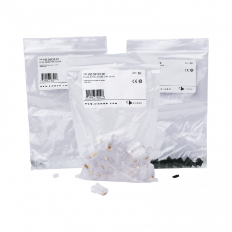 Siemon ofrece una linea de Plugs Modulares para parcheo, aplicaciones de área de trabajo y cableado a dispositivos finales. Los Plugs Modulares se pueden terminar a la longitud exacta del cable para mantener una instalación más ordenada y organizada. Todos los contactos del Plug tienen un mínimo de 50 micro pulgadas de chapado en oro sobre níquel y cumplen con las especificaciones TIA-1096 e IEC 60603-7.