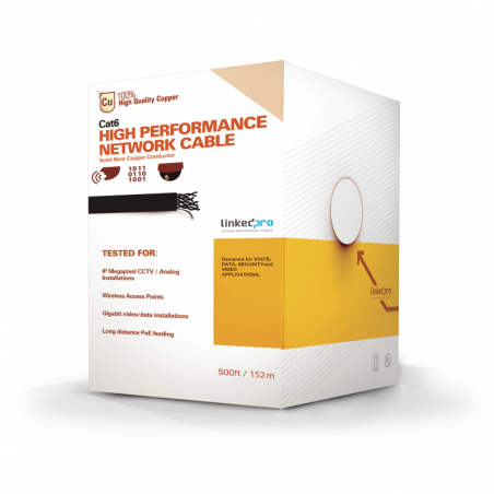 Bobina de cable de 152.5 Metros Cat6+ CALIBRE 23 ALTO DESEMPEÑO, super flexible, UL, color Azúl, para aplicaciones de video vigilancia, HD, y redes de datos. Uso interior.