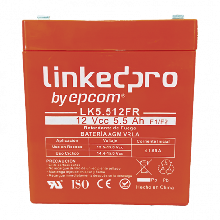 La serie de baterías LINKEDPRO BY EPCOM, están diseñadas con tecnología AGM-VRLA ( Fibra de vidrio absorbente, con válvulas de regulación), placas de alto rendimiento y electrólito para proporcionar una salida de energía adicional. Las baterías de la serie LINKEDPRO BY EPCOM son baterías de respaldo para equipos electrónicos, con una vida útil de diseño flotante de 5 años a 25°C , estan aprobadas por UL ( MH62092 ).